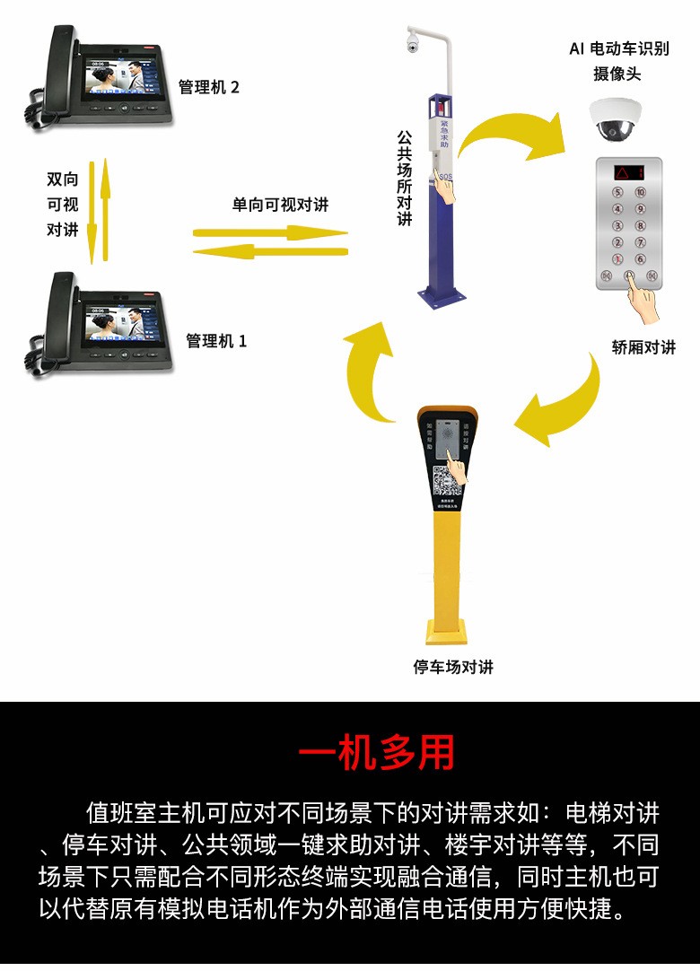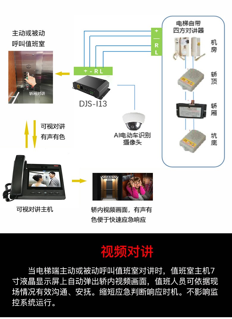 6、 系統(tǒng)融合 對講、電動車識別、視頻和梯控等實現(xiàn)融合