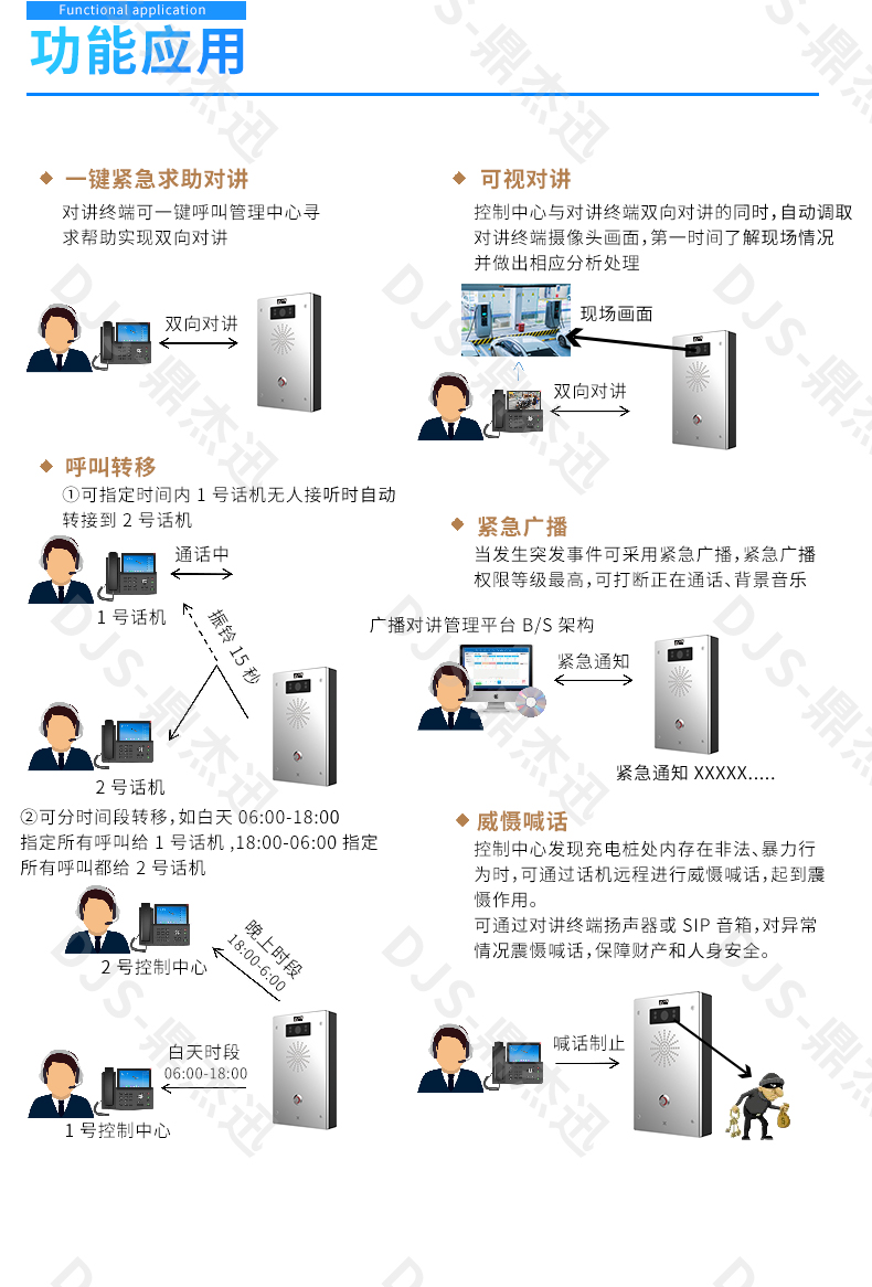 汽車充電樁和電動(dòng)車充電樁,隨著新能源的快速發(fā)展,已經(jīng)快速的在出現(xiàn)在人們的生活中,小區(qū)里面的汽車充電樁,電動(dòng)車充電樁,或者是社會(huì)上停車場(chǎng)的充電樁,解決了新能源車充電的難題,但是,其涉及到的安全隱患,充電樁起火,充電過程中自然等情況,也不斷的發(fā)生,直接威脅到人身財(cái)產(chǎn)安全,受到了人們?cè)絹碓蕉嗟年P(guān)注。為了應(yīng)對(duì)這種事件發(fā)生時(shí),緊急求助需要幫助的時(shí)候,鼎杰迅科技推出了充電樁一鍵報(bào)警IP廣播對(duì)講融合解決方案