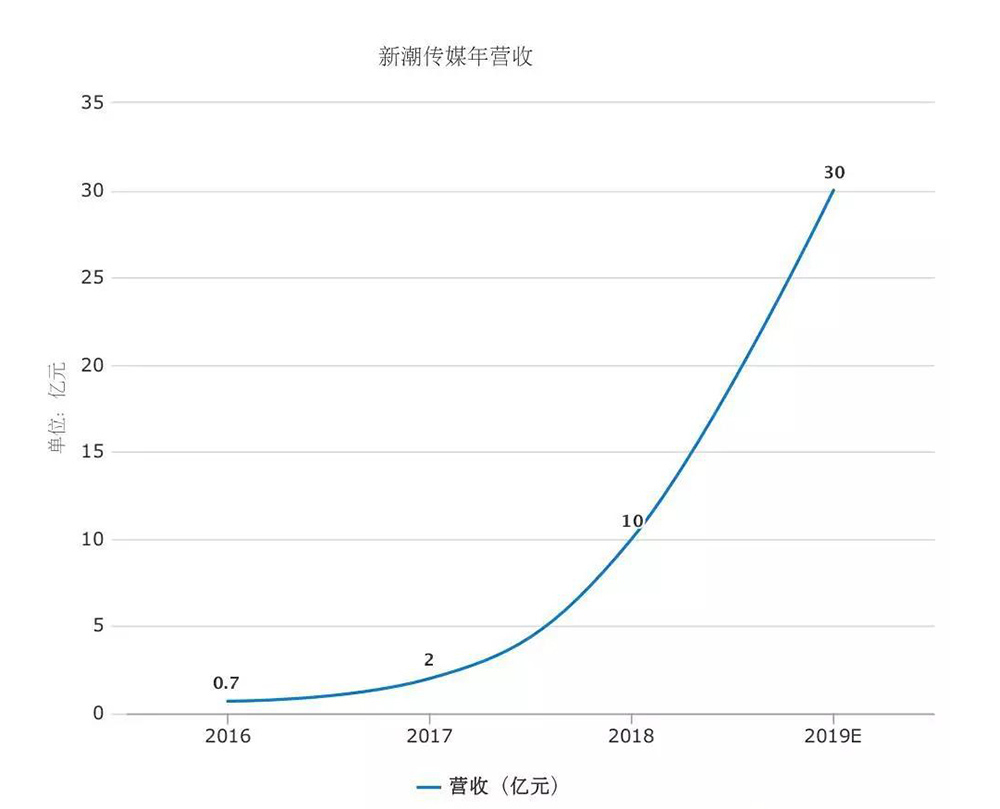 在新潮傳媒前期投資者顧家家居的財(cái)務(wù)報(bào)告中,新潮的2018年?duì)I收得到披露,為10億元。這比2017年的2億元翻了5倍。